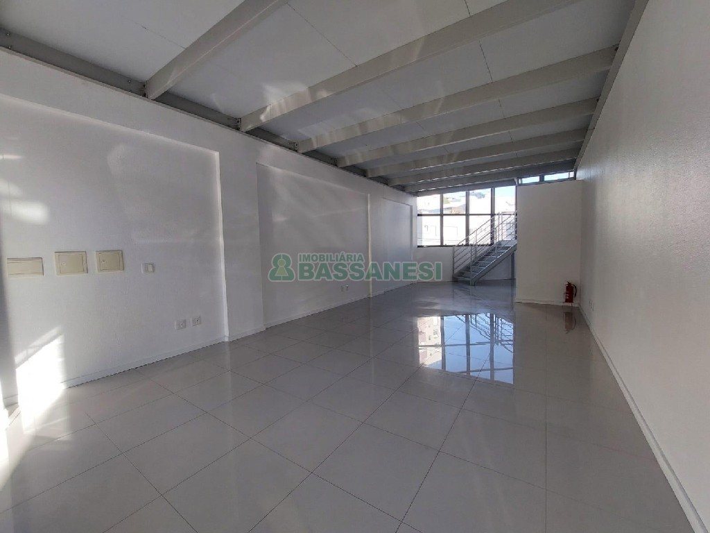 Loja para locação, Bairro Rio Branco, Cidade Caxias do Sul, Estacionamento Frontal, Posição Solar NORTE, Patio, Pe Direito 6,5 METROS, Piso de Porcelanato, Mezanino, 1 Banheiros, De Frente, Área privativa: 102 m², Área total: 102 m².