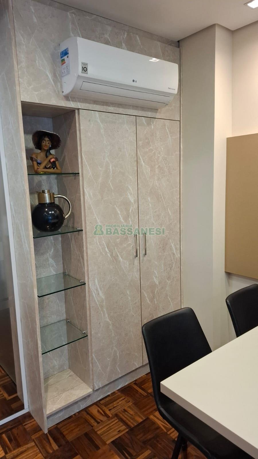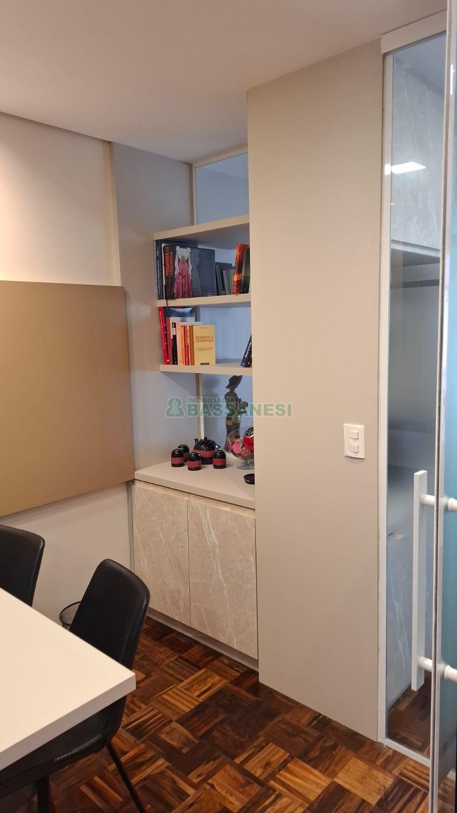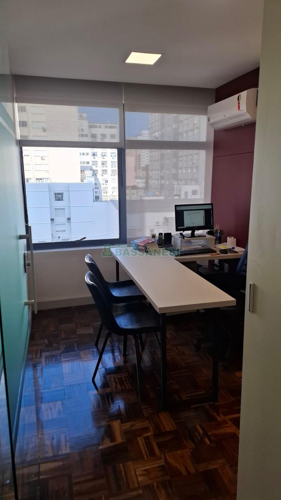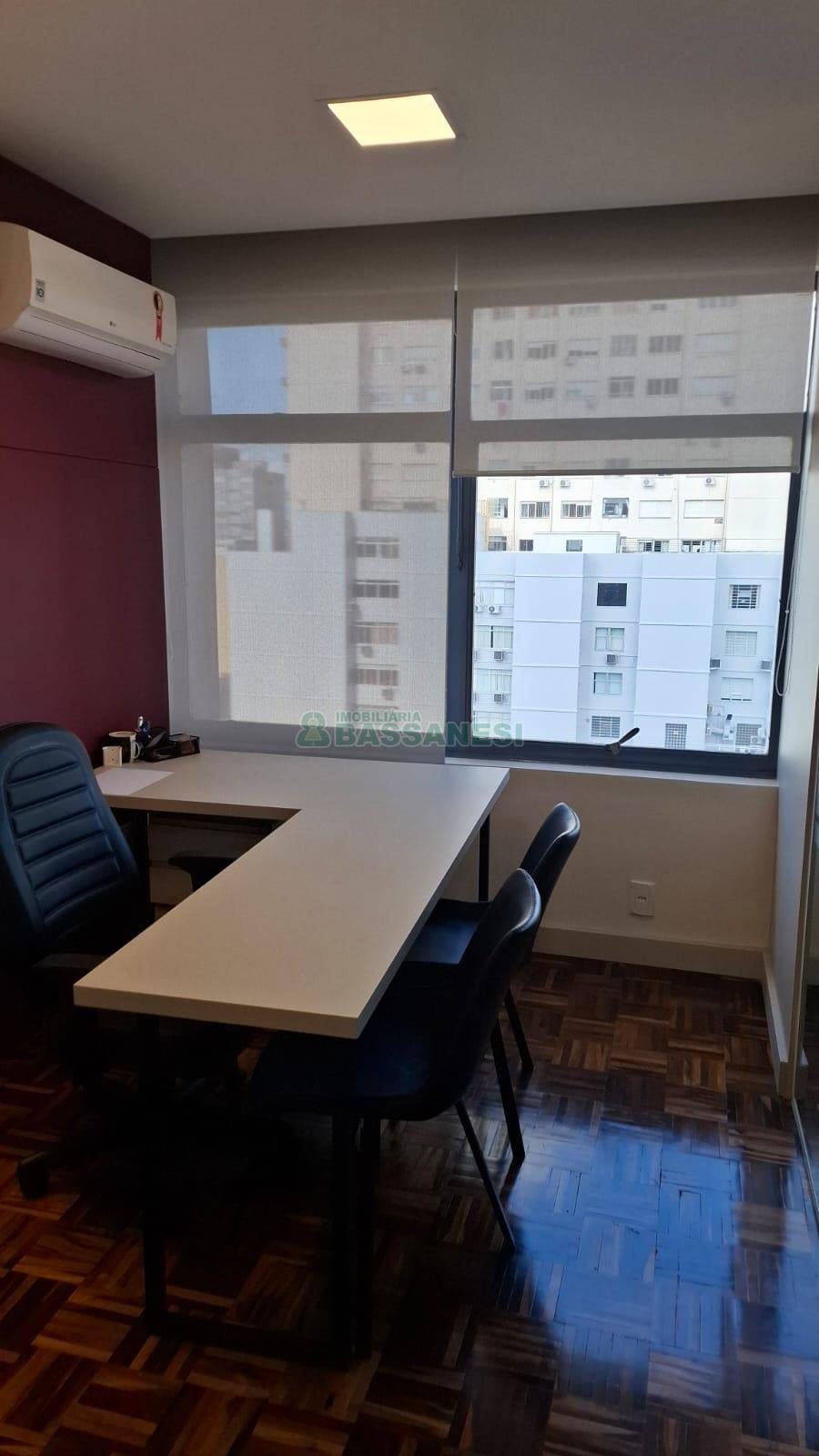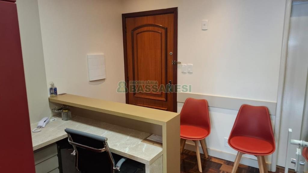 Sala para locação, Bairro Centro, Cidade Caxias do Sul, Ar Condicionado, Valor Condomínio Sujeito a Alt R$520,00, Valor IPTU Sujeito a Alteração R$650,00, Posição Solar LESTE, Elevador, 3 Salas, 1 Cozinha, 1 Area De Serviço, Ed.c/porteiro, Piso De Parquet, Piso Ceramica, Área privativa: 50 m², Área total: 67,9 m².