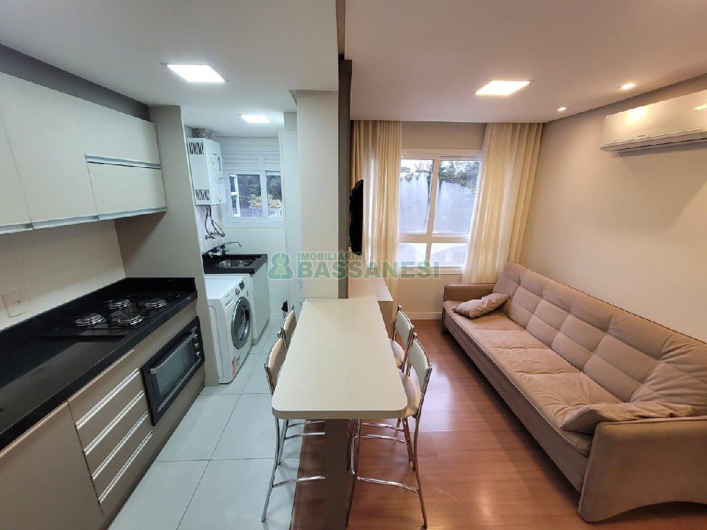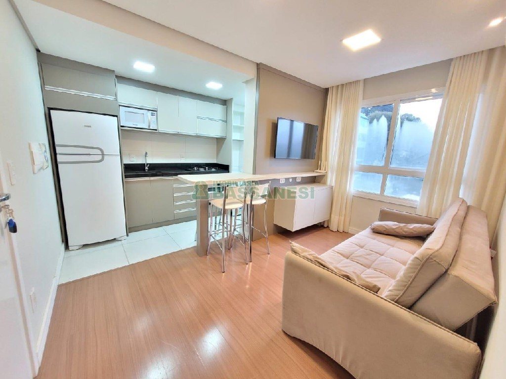 Lindo Apartamento mobiliado com 1 Dorm., 1 Sala, 1 Cozinha, 1 Área De Serviço, 1 Banheiro,1 Vaga Garagem, Piso Laminado e Cerâmica, Alarme, Agua Quente, Ed.c/gas Central, Ar Condicionado Tipo Split, Elevador, Portaria, Câmeras de Segurança, De Frente, Salão De Festas, Posição Solar NORTE, Área privativa: 35,26 m², Área total: 50 m².Valor Condomínio Sujeito a Alteração R$350,00, Valor IPTU Sujeito a Alteração R$850,00, Imóvel Impecável venha conhecer