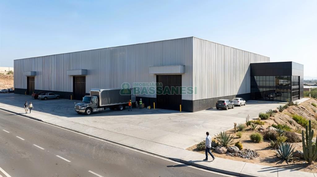 Área total: 4.500 m², sendo 4.000 m² de área fabril e 500 m² de escritórios distribuídos entre térreo e mezanino.