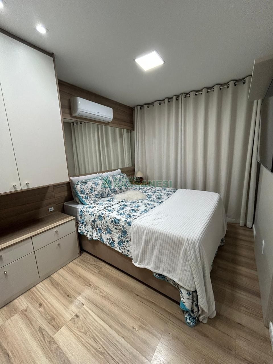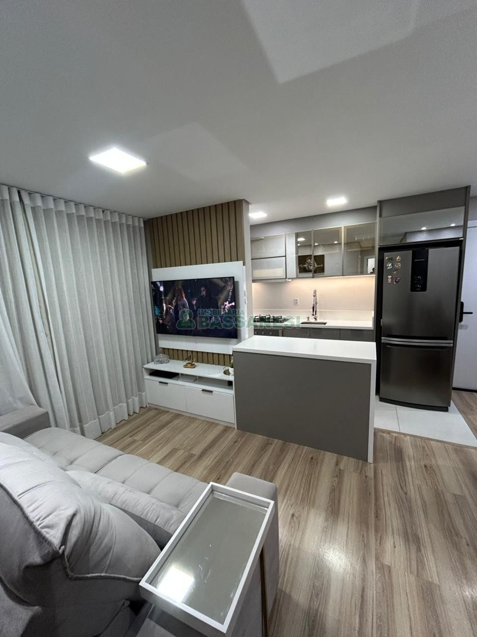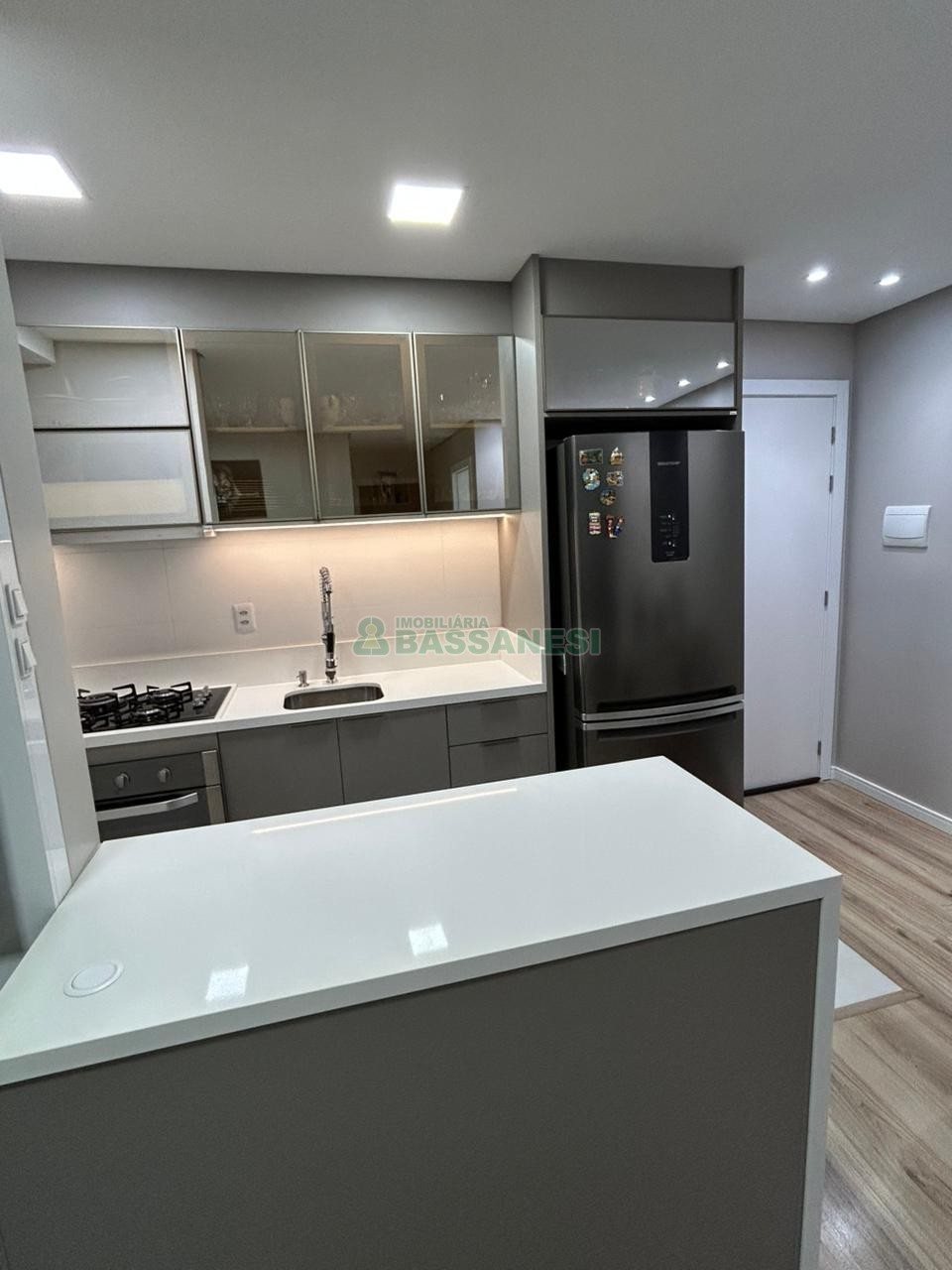 Este apartamento semi-mobiliado oferece uma ótima oportunidade de morar com conforto e praticidade, em uma área bem localizada. Com 54,6 m² de área privativa, conta com dois dormitórios, sala, cozinha, sacada e um banheiro. A unidade possui piso laminado, água quente, churrasqueira na sacada e uma vaga de garagem, além de estar em prédio com elevador, salão de festas e gás central.