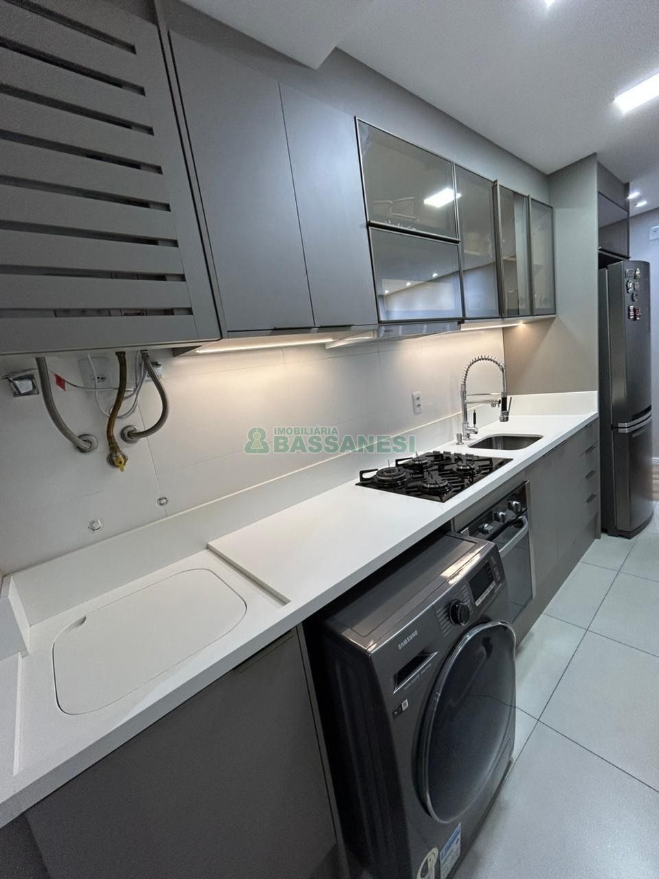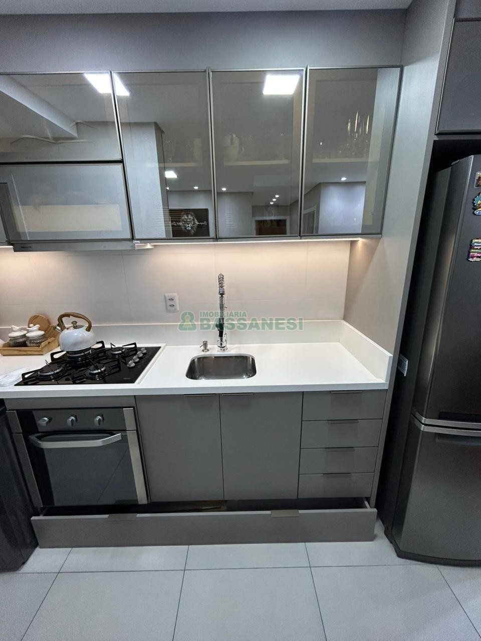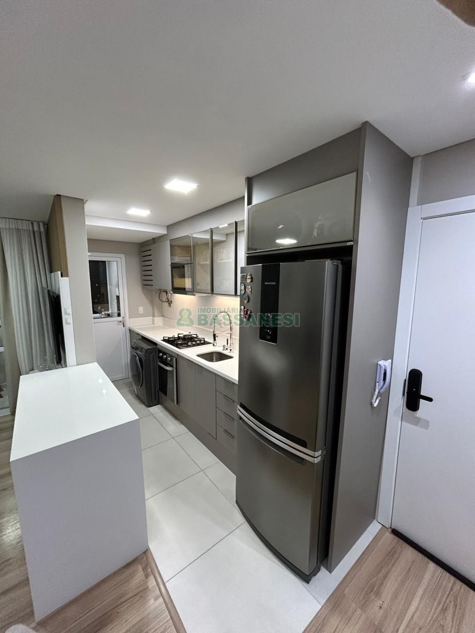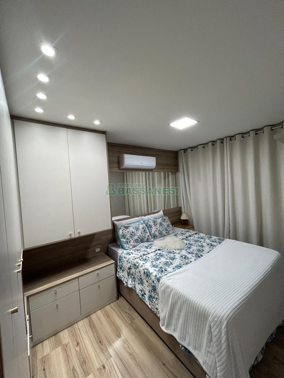Este apartamento semi-mobiliado oferece uma ótima oportunidade de morar com conforto e praticidade, em uma área bem localizada. Com 54,6 m² de área privativa, conta com dois dormitórios, sala, cozinha, sacada e um banheiro. A unidade possui piso laminado, água quente, churrasqueira na sacada e uma vaga de garagem, além de estar em prédio com elevador, salão de festas e gás central.