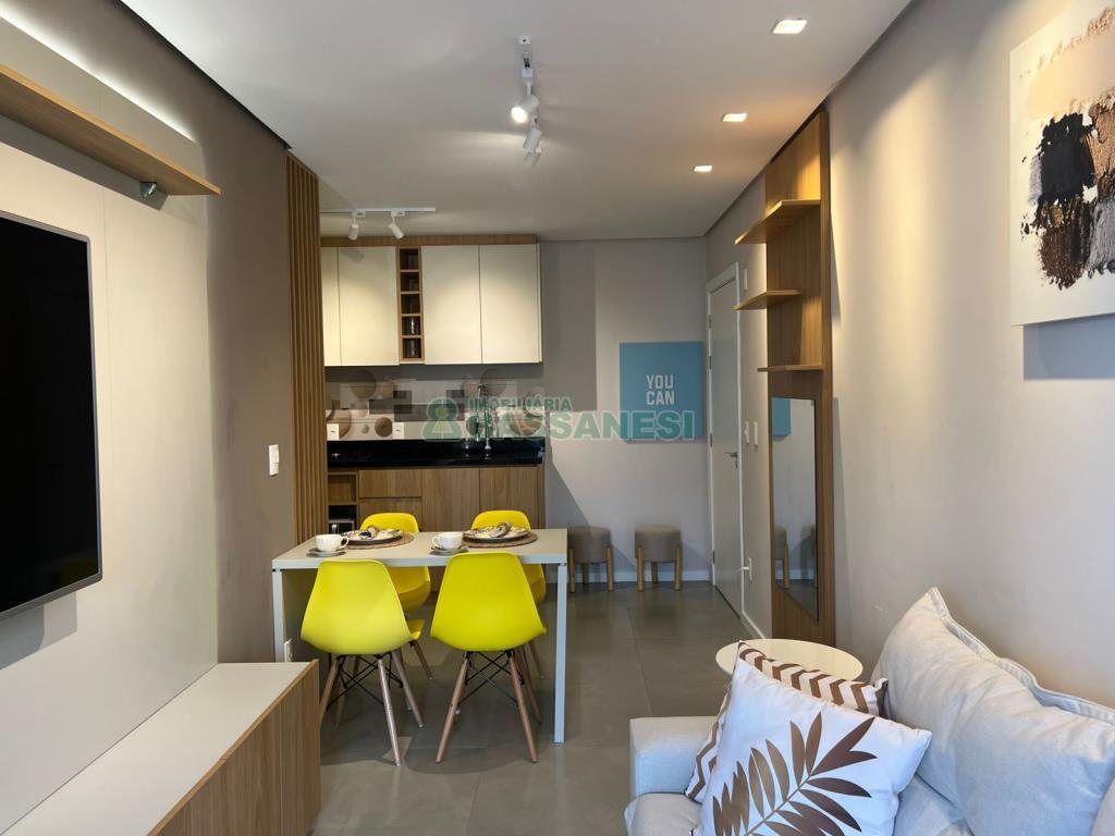Charmoso apartamento mobiliado para locação, com 48 m² de área privativa, em posição de frente. Com uma sala, cozinha, área de serviço, sacada, um dormitório e um banheiro, oferece conforto e praticidade para o seu dia a dia. Seus ambientes contam com piso de porcelanato, e o imóvel ainda dispõe de uma vaga de garagem e sistema de alarme para maior segurança.
