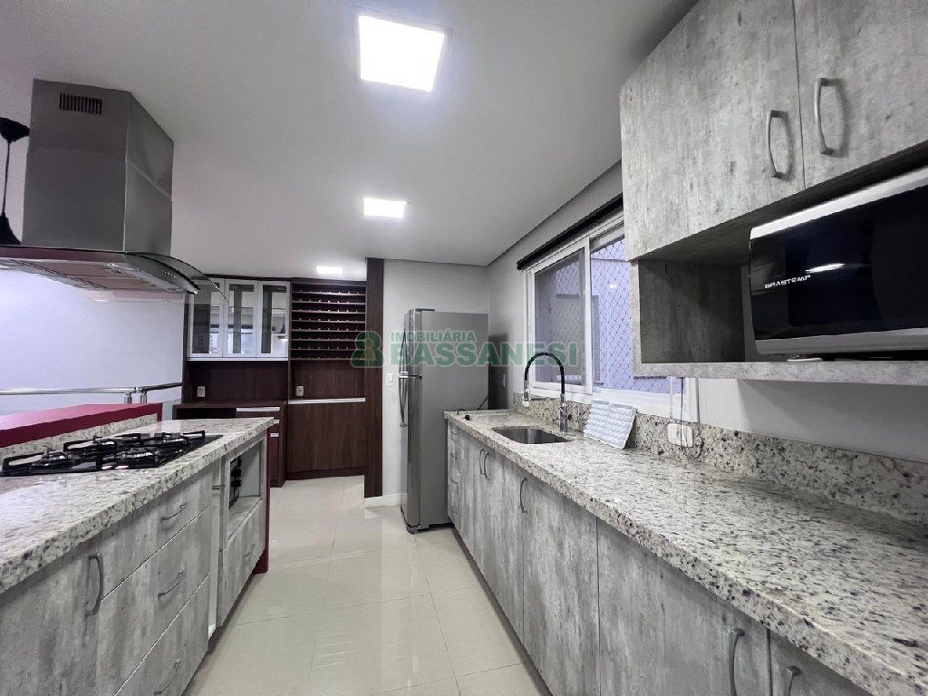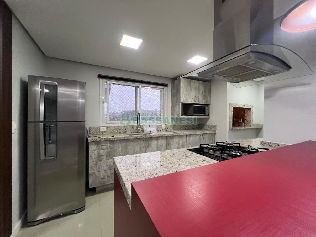 Apartamento para locação, Bairro Universitário, Cidade Caxias do Sul, Semi-Mobiliado, com 3 Dorms.,3 Banheiros sendo 1 suíte e 1 lavabo, Terraço 24 metros, Elevador, Piso de Porcelanato, 2 Salas, 2 Cozinhas, 1 Suite, 2 Sacadas, 2 Vaga Garagens, Alarme, Agua Quente, Churrasqueira, Ed.c/gas Central, De Fundos, Valor Condomínio Sujeito a Alteração R$ 447,77, Valor IPTU Sujeito a Alteração R$1.700,00, Área privativa: 197 m², Área total: 197 m².rtura